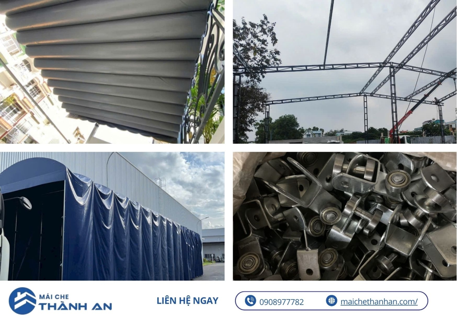 Bên cạnh dịch vụ thi công mới, Mái Che Thành An n còn nhận sửa chữa, lắp đặt và thay thế linh kiện, bao gồm mô tơ, bạc đạn, bánh xe, vải bạt, khung sắt… nhằm đảm bảo mái che của bạn hoạt động ổn định, trơn tru và bền đẹp như mới.